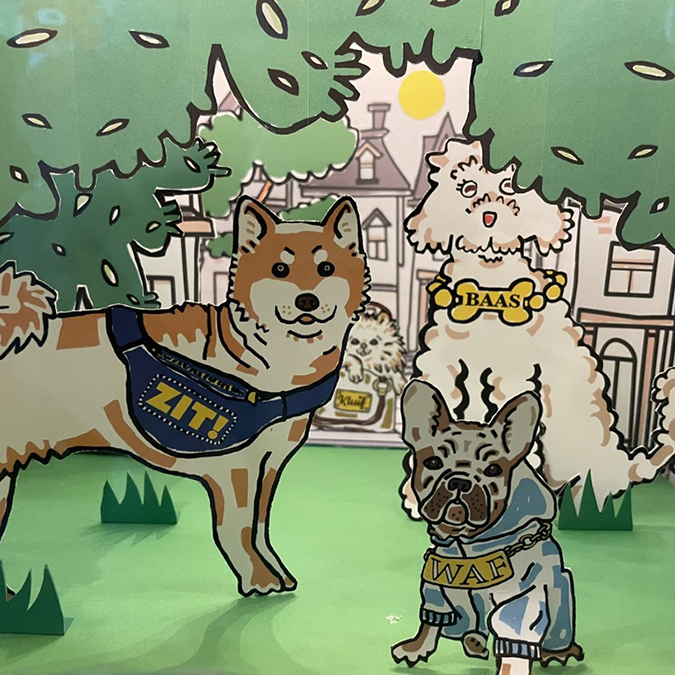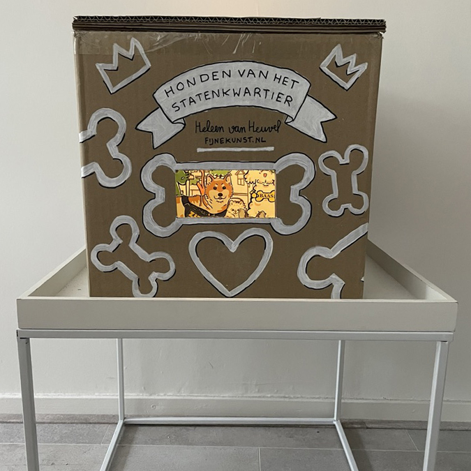 Een kijkdoos van fijnekunst! Voor het wijkfeest op het Frederik Hendrikplein maakte ik een kijkdoos van de honden van het Statenkwartier.