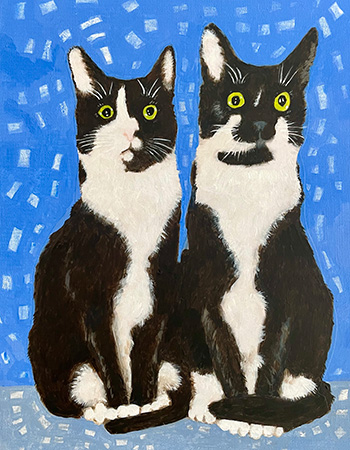 Spike en Finn 30 x 40 cm Acryl en collage op doek.